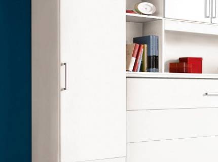 Dulap cu o usa cu balamale si 2 sertare ALBERO 47x197x54cm alb alpin, manere aluminiu