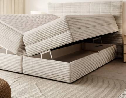 Pat Boxspring cu spatiu pentru depozitare MADDEN 140/ 160/ 180cm personalizabil