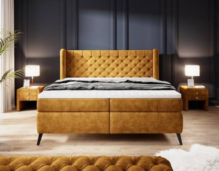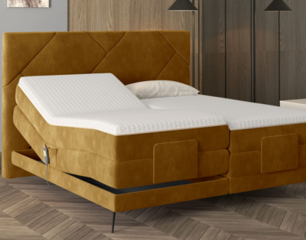 Pat Boxspring cu reglaj electric si topper LENOX (180x200cm) catifea mustar