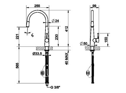 Baterie de bucatarie Smeg MD10CR2, extractibila, crom