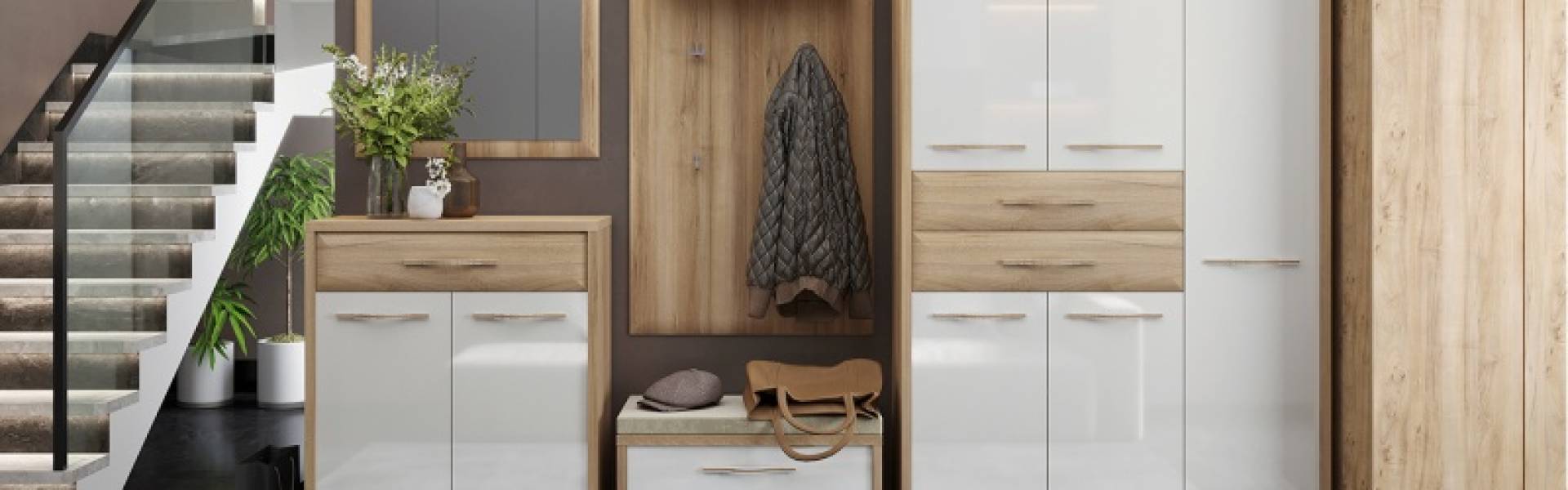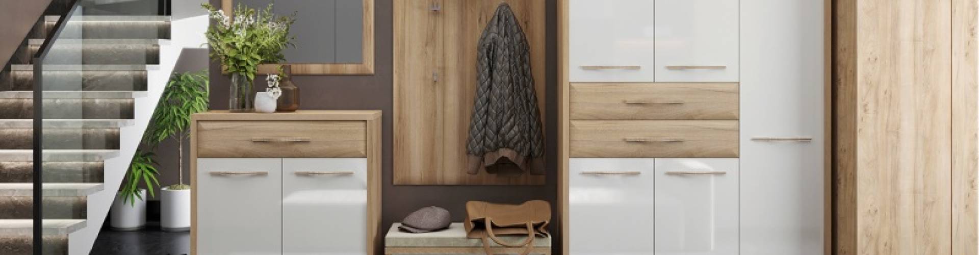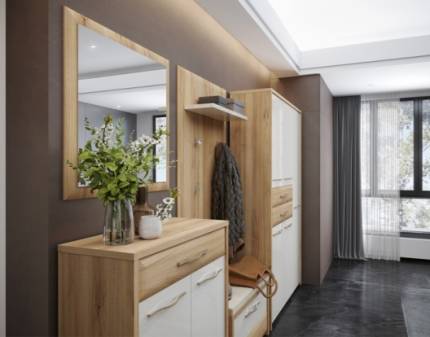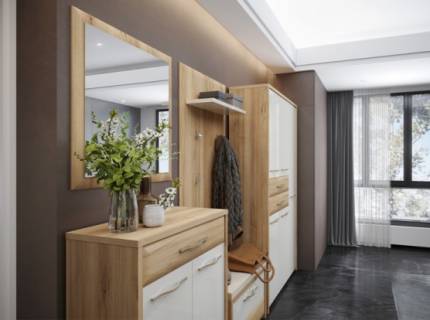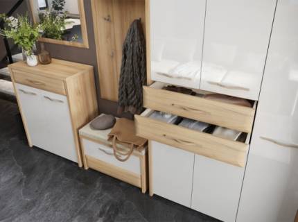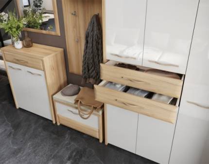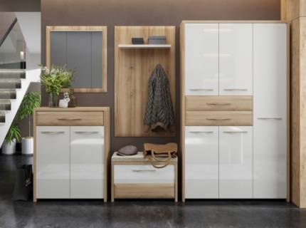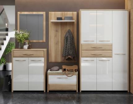 Dulap hol cu 4 usi si 2 sertare GALA 78x192x36cm bej lucios/ nuc Pacific
