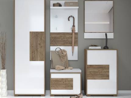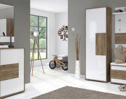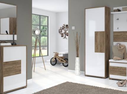 Dulap hol cu 1 usa STELA 63x197x36cm stejar tabac/ alb lucios