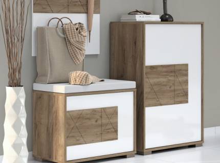 Pantofar cu 1 usa STELA 63x94x35cm stejar tabac/ alb lucios