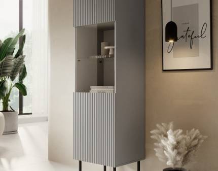 Vitrina inalta cu 2 usi si sticla ASENSIO 50x180x42cm gri