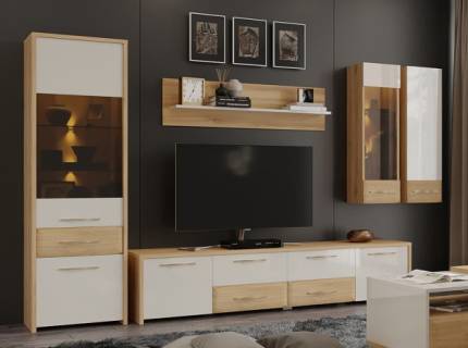 Comoda TV cu 2 usi si 4 sertare GALA 219x48x46cm bej lucios/ nuc Pacific