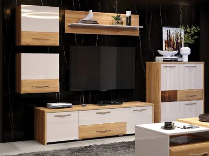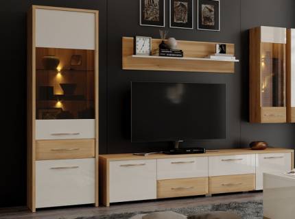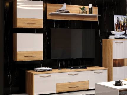 Comoda TV cu 1 usa si 2 sertare GALA 135x48x46cm bej lucios/ nuc Pacific