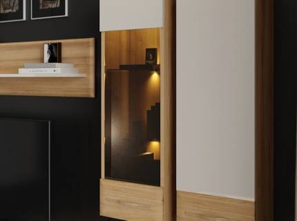 Vitrina inalta cu 2 usi cu sticla si 1 sertar GALA 61x194x41cm bej lucios/ nuc Pacific