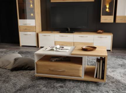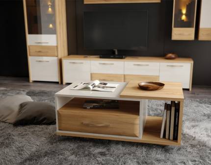 Masuta cu 1 sertar pentru depozitare GALA 117x60x47cm bej lucios/ nuc Pacific