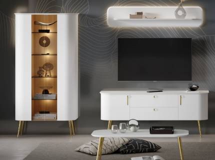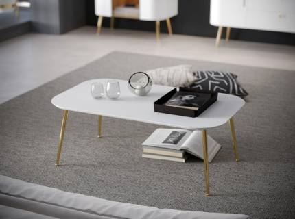 Masuta GALET 110x65x42cm alb mat, picioare aurii