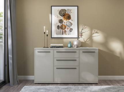 Comoda cu 3 usi si 2 sertare OPERA 150x85x46cm casmir, manere si picioare Cortado Brown