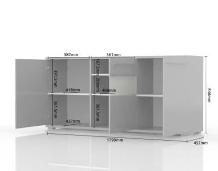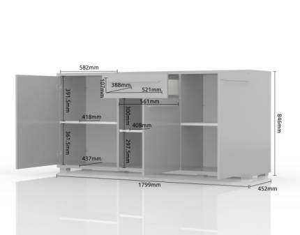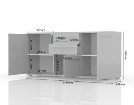 Comoda cu 3 usi si 2 sertare PIANO WHITE 180x85x45cm alb lucios, manere si picioare crom