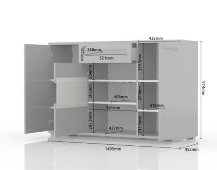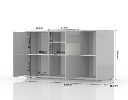 Comoda cu 3 usi si 2 sertare PIANO WHITE 150x85x45cm alb lucios, manere si picioare crom