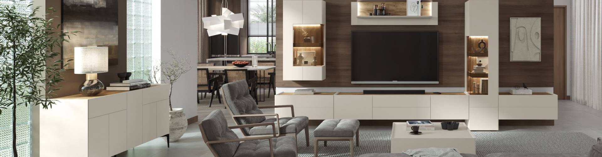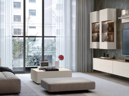 Comoda TV suspendata cu 2 usi si 2 sertare SKY 45 206x37x47cm casmir/ stejar tabac