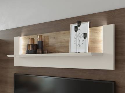 Polita susendata cu led SKY 45 140x37x22cm casmir/ stejar tabac