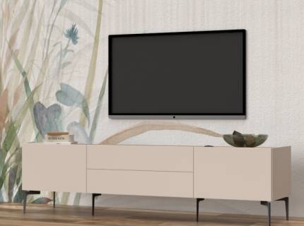 Comoda TV cu picioare negre, 2 usi si 2 sertare SKY 45 206x56x47cm casmir/ stejar tabac