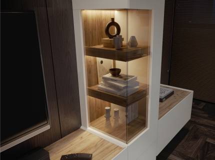 Vitrina inalta cu led SKY 45 45x201x47cm casmir/ stejar tabac - sticla