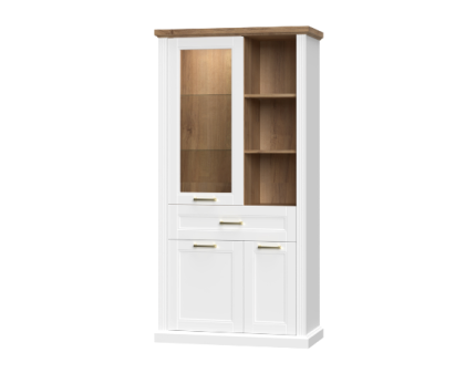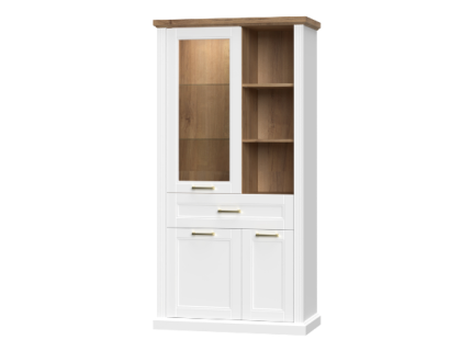 Vitrina cu 2 usi cu sticla TARA WHITE 66x132x48cm alb mat/ nuc Pacific
