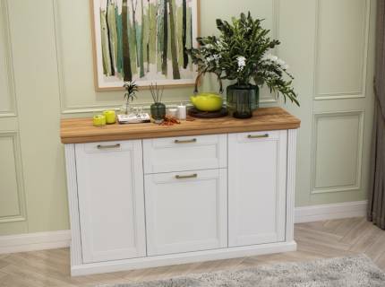 Comoda cu 1 usa si 3 sertare TARA WHITE 138x91x48cm alb mat/ nuc Pacific