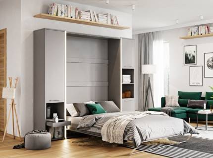 LENART PRO CONCEPT set pat (140x200cm) rabatabil pe perete cu 2 dulapuri 245x46-237x217cm gri